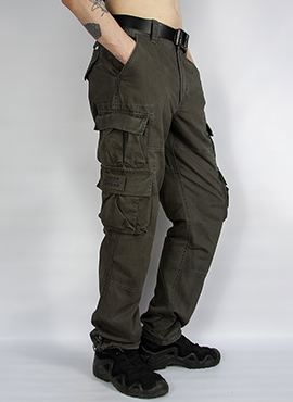Мужские брюки из 100 % плотного, бархатистого хлопка. Пояс регулируется велкро застежкой, брюки имеют 2 ряда карманов. Низ штанины усилен полиэстровой стропой, ширина низа регулируется нейлоновой затяжкой с фиксатором. Вместительные карманы, с продуманным функционалом. Задняя часть брюк дополнительно усилена слоем ткани (защита от протирания).На левом боковом кармане имеется сьемный, фирменный патч на липучке. Посадка средняя. Брюки предлагаются в 2 ростовках ( 32 и 34)